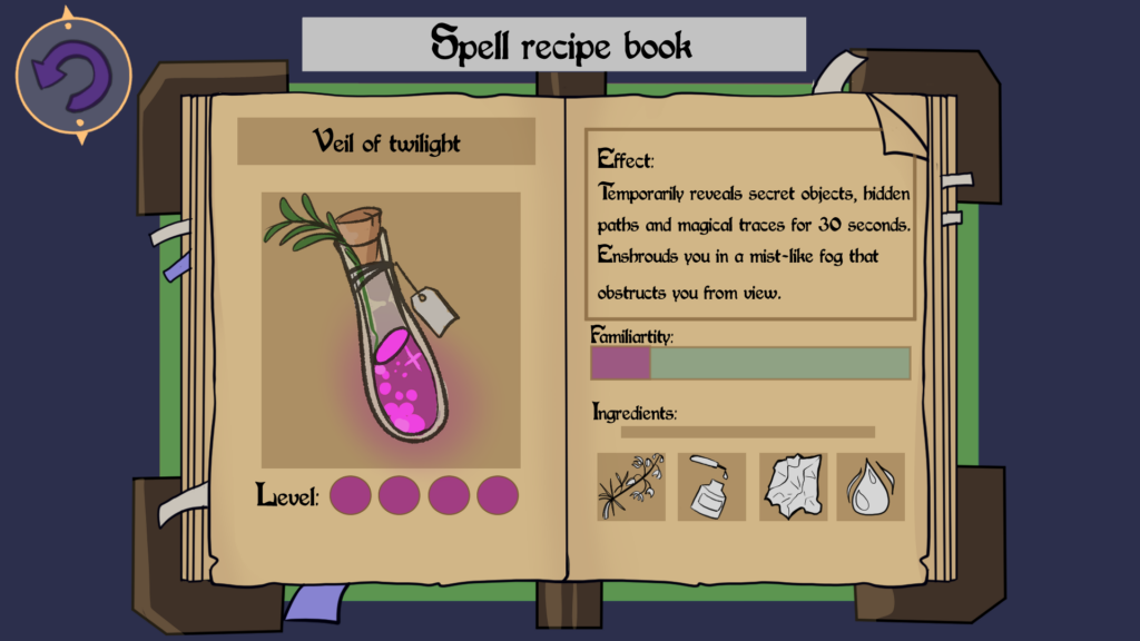 Using Figma, this project explores the design of a potion crafting interface for a witch themed game.